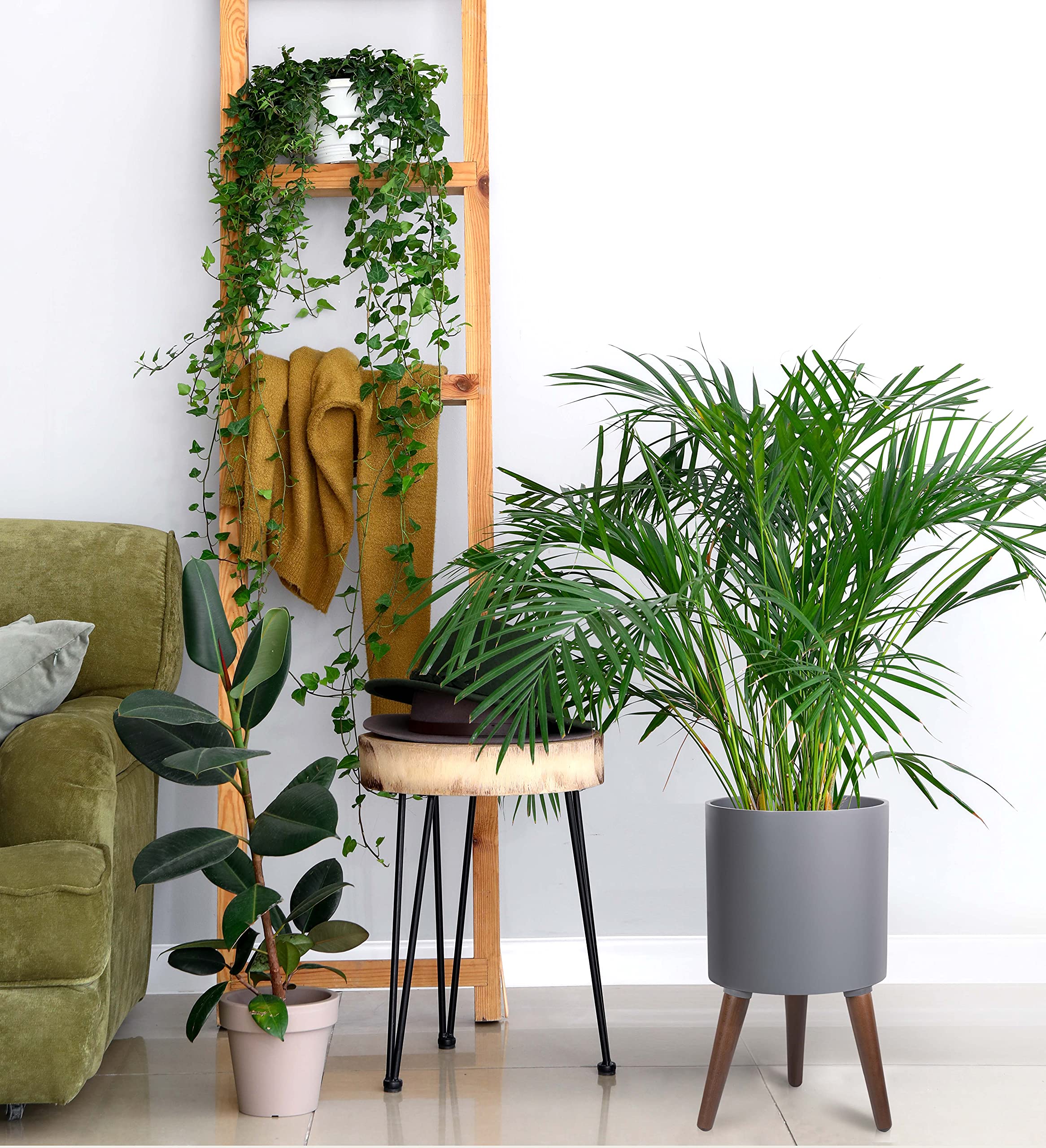 Mid Century 10 Tall Plant Pot With Legs For Indoor Plants Medium Grey 88 St 3 M Amazon De Garden